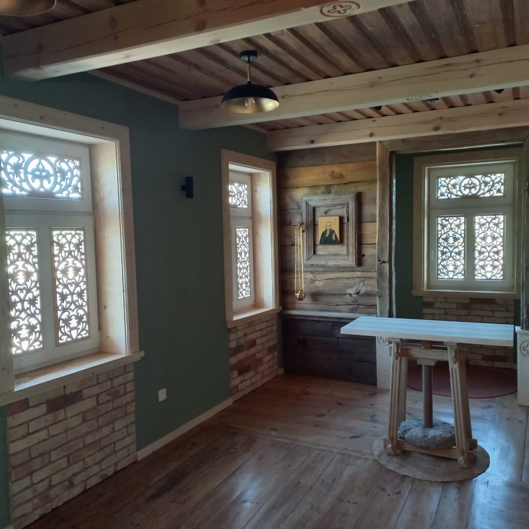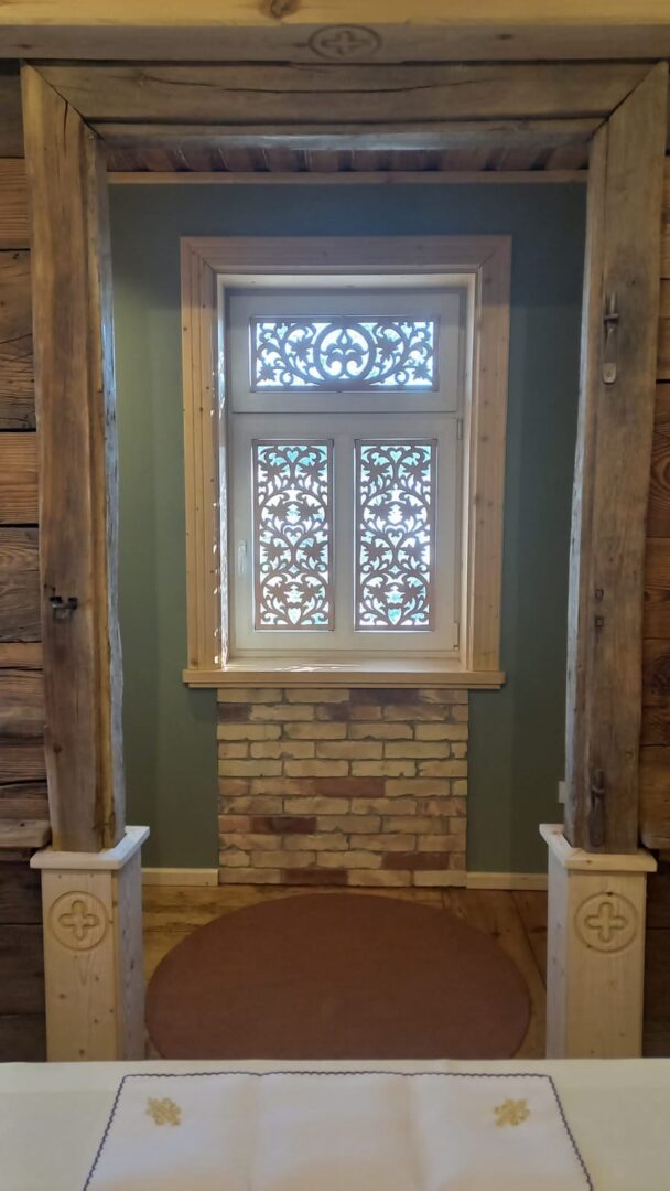 Pracownia miała ogromną przyjemność wykonania ażurowych zdobień okien w Pustelni Pallotyńskiej w Hodyszewie na Podlasiu. Aranżacja dekoracyjna okien za pomocą ażurowych ornamentów wykonanych ręcznymi technikami stolarstwa laubzegowego, w drewnie naturalnym.